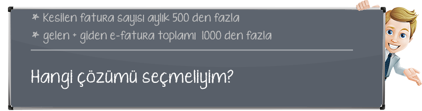 Tercihen entegrasyon sunucusu çözümünü kullanmanızı öneririz. Muhtemelen artan e-fatura kullanıcısı sebebi ile efatura sayınız daha da çok artacaktır.